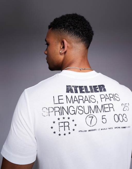ASOS DESIGN – Biały T-shirt z nadrukiem „Atelier“
