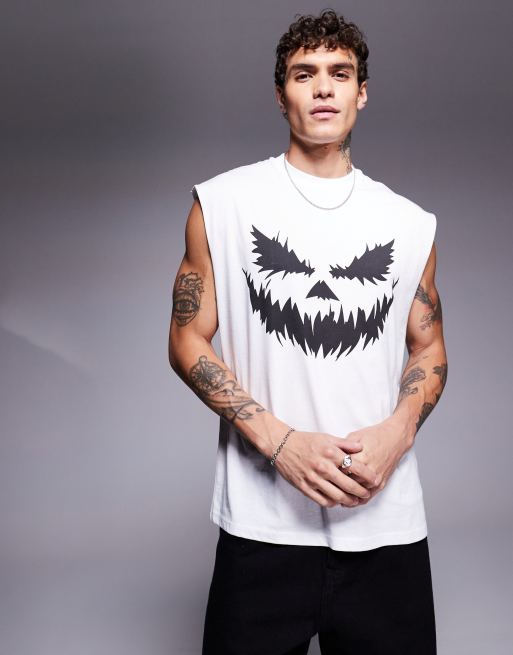 ASOS DESIGN – Biały top oversize bez rękawów z halloweenowym nadrukiem z przodu