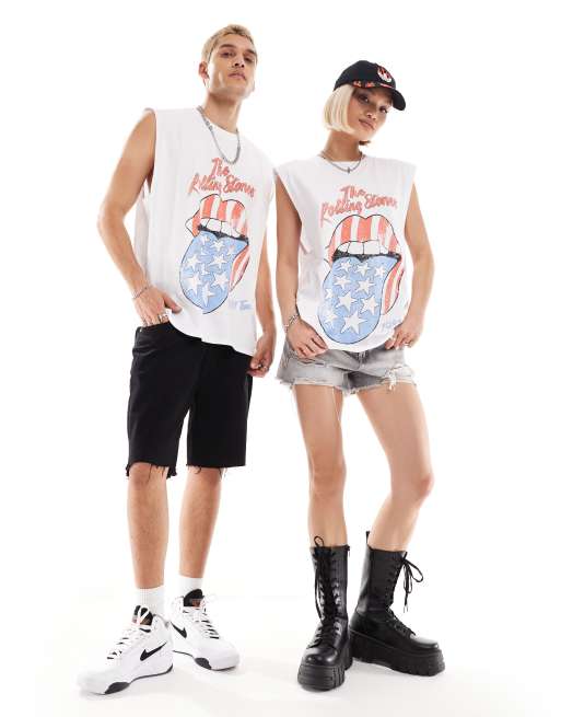 ASOS DESIGN – Biały top oversize unisex bez rękawów, z nadrukiem z licencjonowanym motywem trasy Rolling Stones z 1981 r.