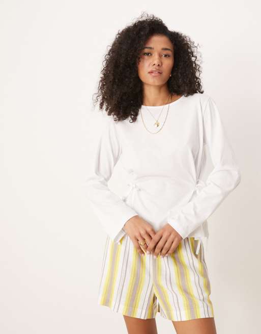 ASOS DESIGN – Biały zbierany po bokach top z długimi rękawami