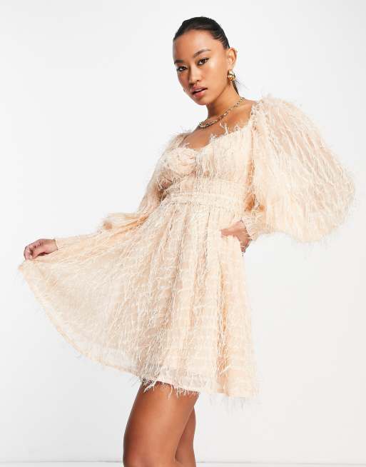 ASOS DESIGN – Bladoróżowa puszysta sukienka mini z marszczonym biustem i mankietami