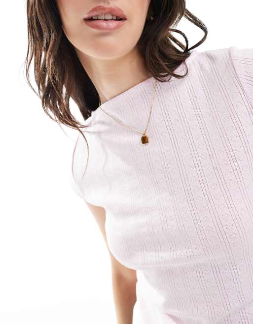 ASOS DESIGN – Bladoróżowy T-shirt ażurowy z prostym dekoltem