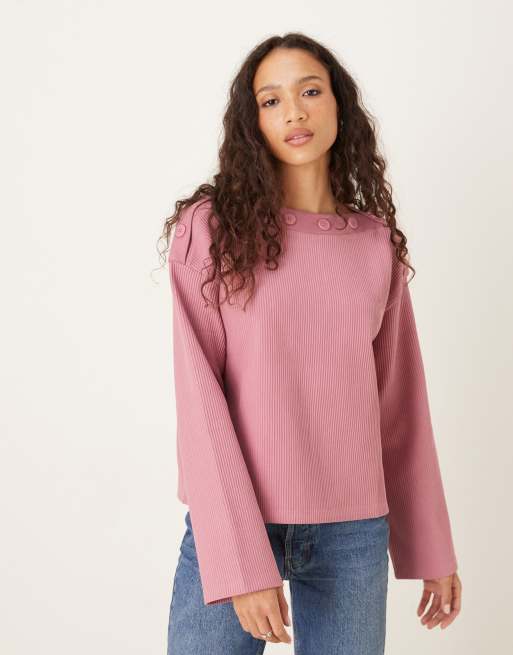 ASOS DESIGN – Bladoróżowy top oversize z długimi rękawami i ozdobnymi guzikami