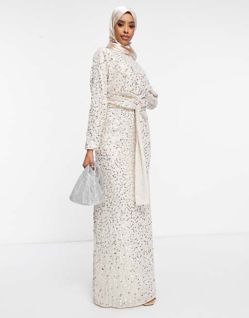 ASOS DESIGN – Bladozłota, zdobiona sukienka maxi z rękawami typu nietoperz