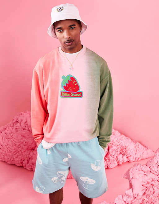 ASOS DESIGN – Bluza dresowa oversize z gradientowym efektem tie-dye i nadrukiem truskawki