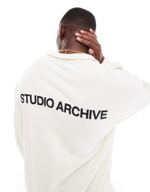 ASOS DESIGN – Bluza oversize o pudełkowym kroju w kolorze ecru z suwakiem pod szyją i napisem „Studio Archive” na plecach