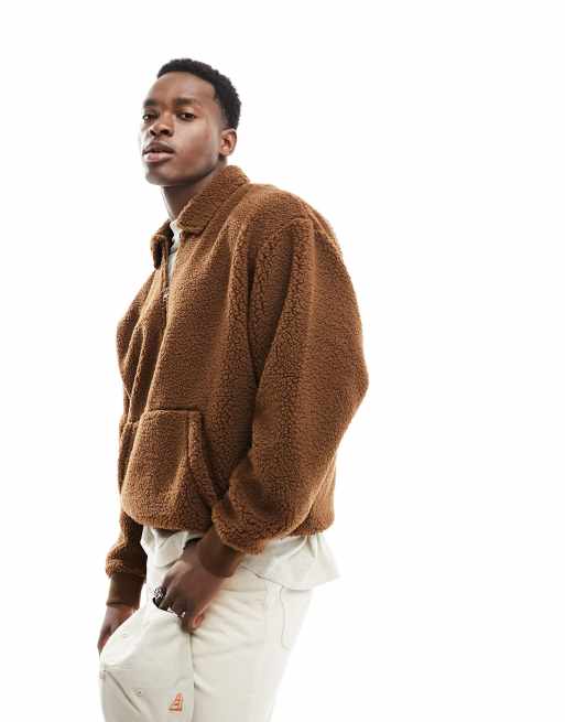 ASOS DESIGN – Bluza oversize w stylu rugby z jasnobrązowego kożuszka z suwakiem pod szyją