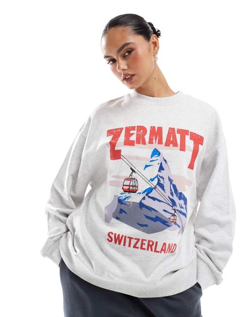 ASOS DESIGN – Bluza oversize w szarym melanżowym kolorze z nadrukiem z napisem Zermat