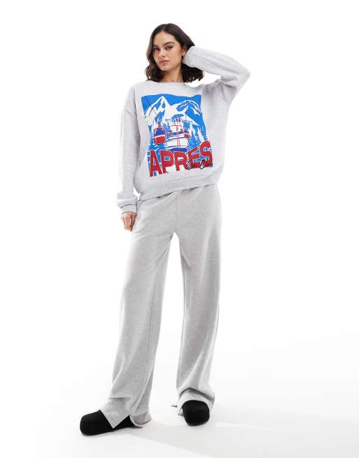 ASOS DESIGN – Bluza oversize w szarym melanżowym kolorze z narciarską grafiką