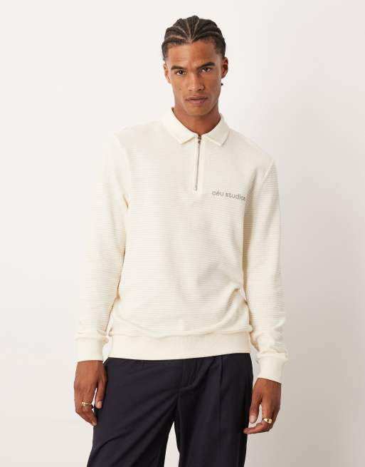 ASOS DESIGN – Bluza w kolorze ecru z kołnierzykiem z zamkiem pod szyją i nadrukiem na piersi
