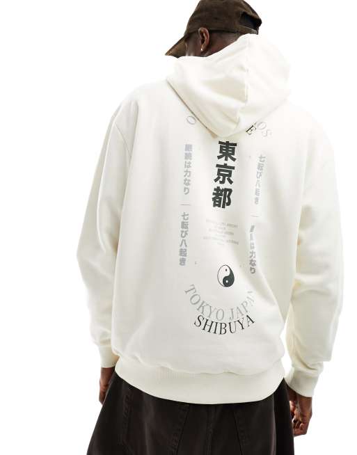 ASOS DESIGN – Bluza z kapturem oversize w kolorze złamanej bieli z nadrukiem na plecach