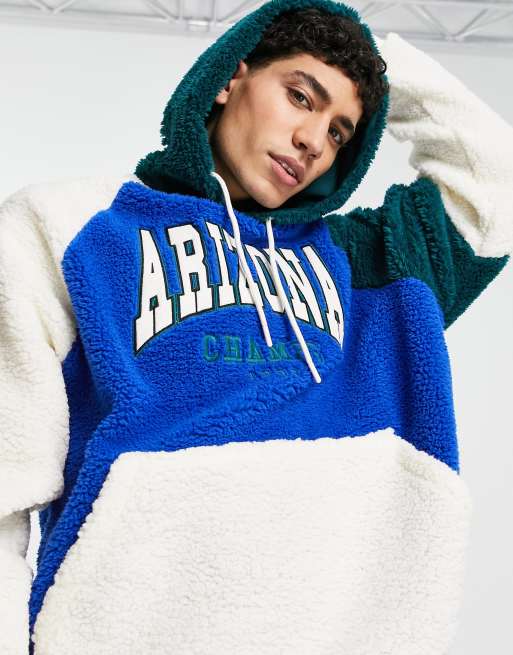 ASOS DESIGN – Bluza z kapturem oversize z kożuszka z blokami kolorów i uczelnianym napisem