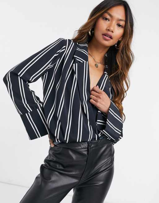 ASOS DESIGN – Bluzka kopertowa z długim rękawem i poduszkami na ramionach w białe paski