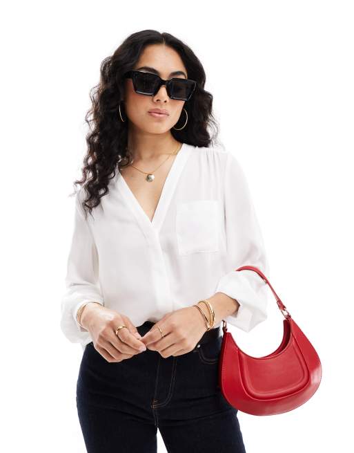 ASOS DESIGN – Bluzka w kolorze kości słoniowej z długim rękawem i i kieszenią