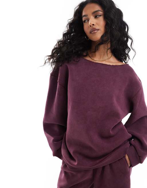 ASOS DESIGN – Bordowa bluza oversize z odkrytymi ramionami i efektem sprania, część zestawu