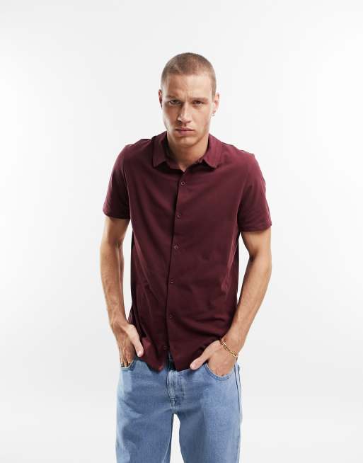 ASOS DESIGN – Bordowa dżersejowa koszula zapinana na guziki