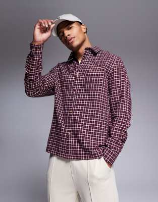 ASOS DESIGN – Bordowa koszula o regularnym kroju w kratkę dad