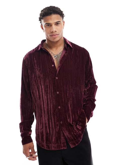 ASOS DESIGN – Bordowa koszula oversize o pudełkowym kroju z gniecionego aksamitu