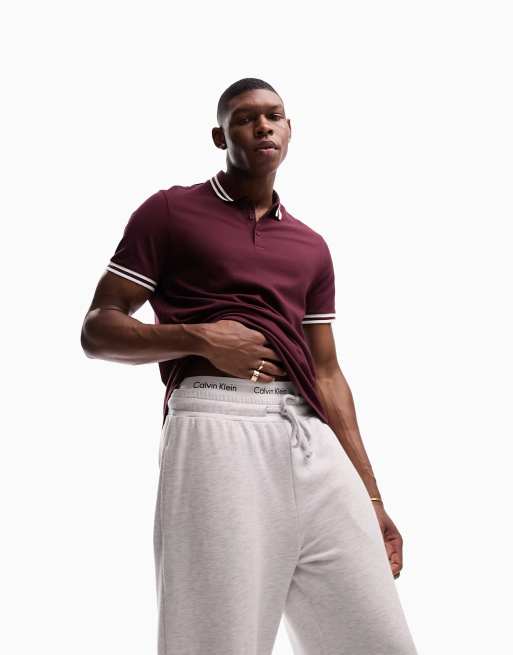 ASOS DESIGN – Bordowa koszulka polo z piki z kontrastowym wykończeniem