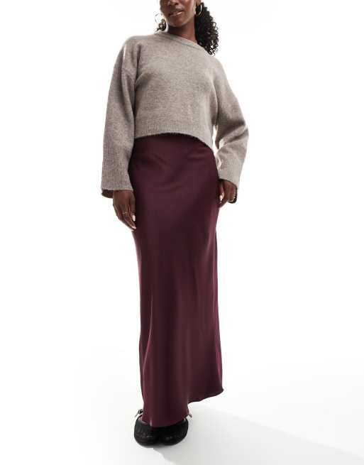 ASOS DESIGN – Bordowa satynowa spódnica maxi cięta ze skosu