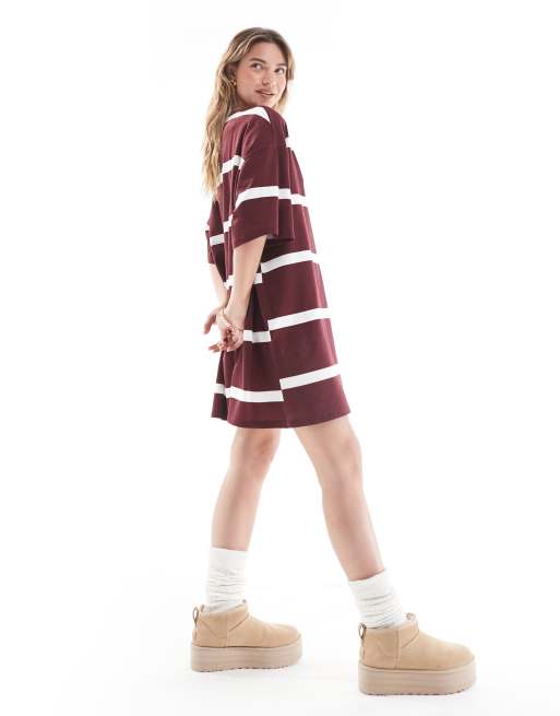 ASOS DESIGN – Bordowa t-shirtowa sukienka mini oversize w paski