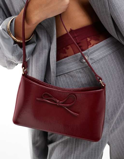 ASOS DESIGN – Bordowa torebka na ramię w stylu lat 90. z kokardką