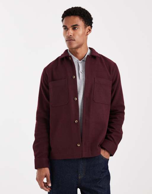 ASOS DESIGN – Bordowa, wełnopodobna koszula wierzchnia w jodełkę