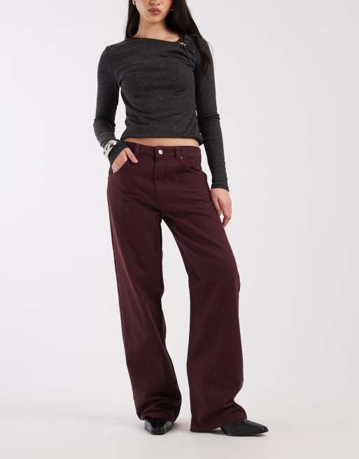 ASOS DESIGN – Bordowe jeansy baggy z obniżonym stanem
