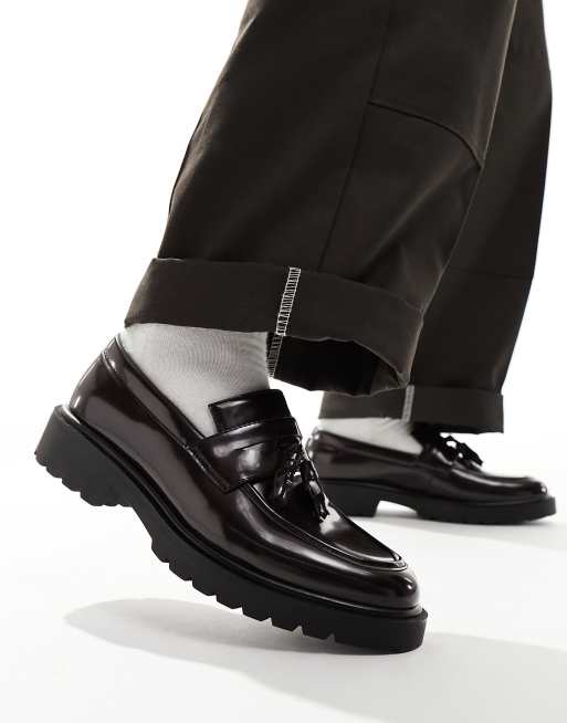 ASOS DESIGN – Bordowe loafersy z chwostami z imitacji skóry na masywnej podeszwie
