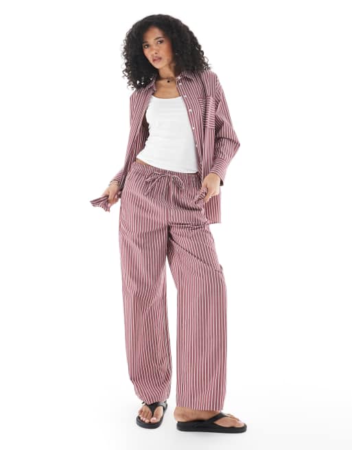 ASOS DESIGN – Bordowe spodnie w paski z z szerokimi nogawkami i wiązaniem w talii, część zestawu