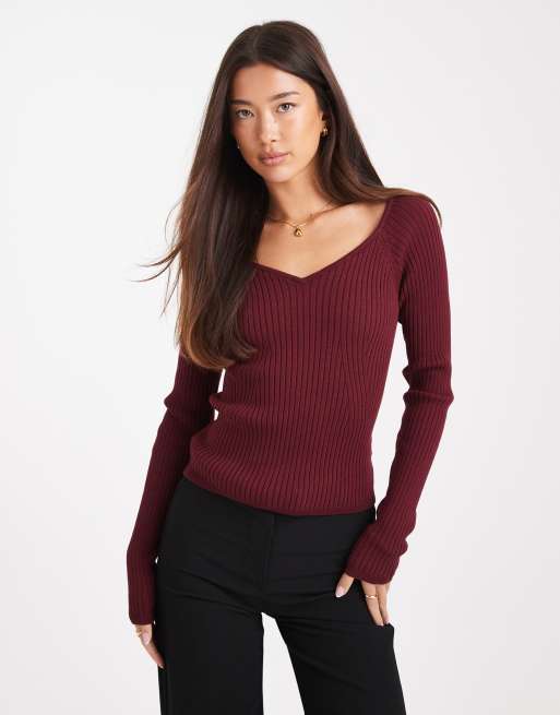 ASOS DESIGN – Bordowy dzianinowy top z dekoltem w kształcie litery V