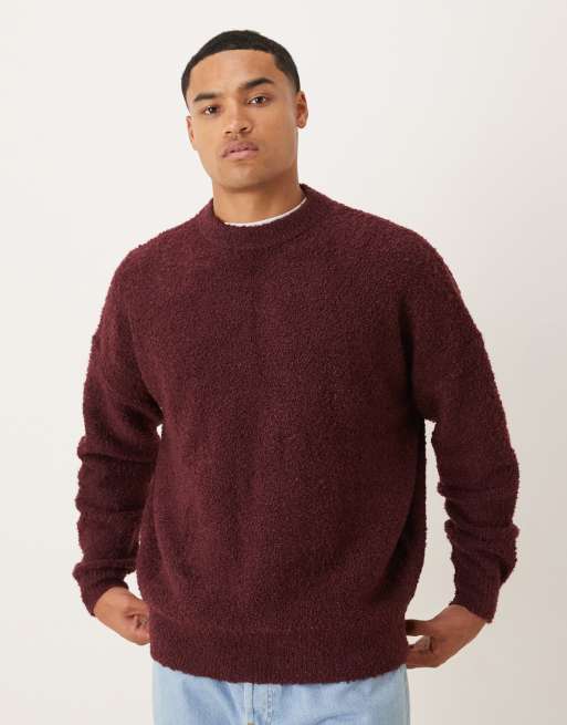 ASOS DESIGN – Bordowy sweter super oversize z dzianiny boucle