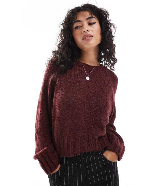 ASOS DESIGN – Bordowy sweter z dzianiny boucle o luźnym kroju z okrągłym dekoltem