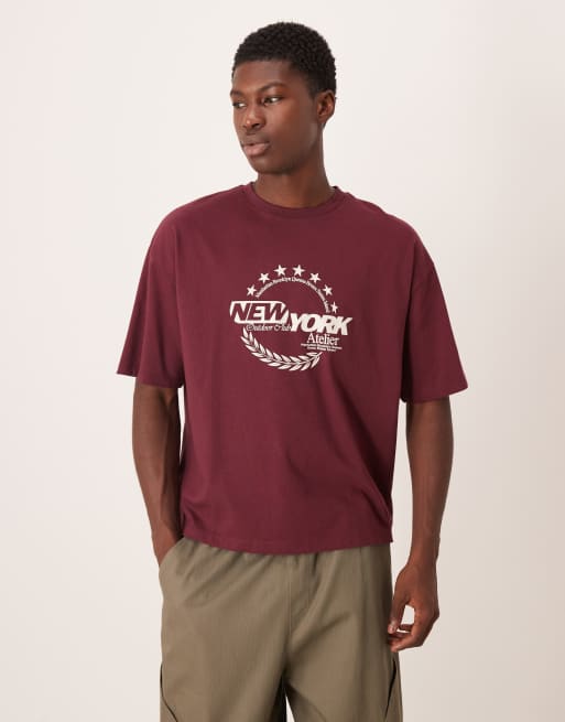 ASOS DESIGN – Bordowy T-shirt o pudełkowym kroju oversize z grafiką i napisem „New York"