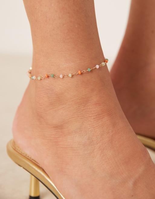 ASOS DESIGN – Bransoletek na kostkę w kolorze złota z kolorowymi koralikami