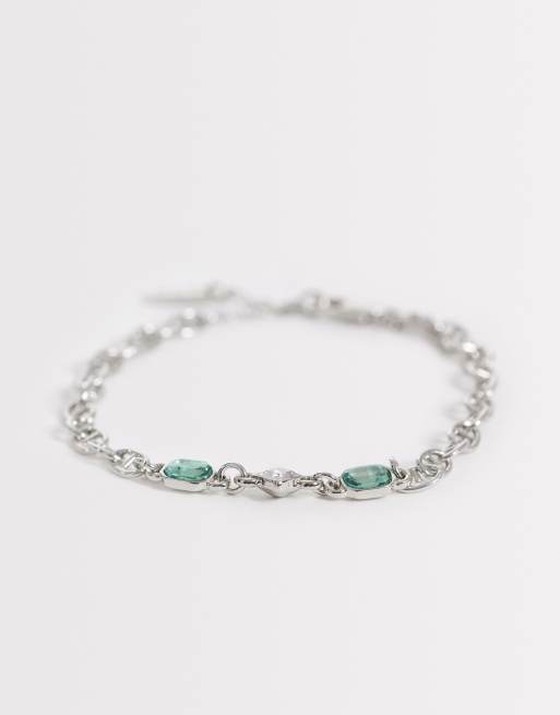 ASOS DESIGN – Bransoletka łańcuszkowa w odcieniu srebra z zielonymi kryształkami