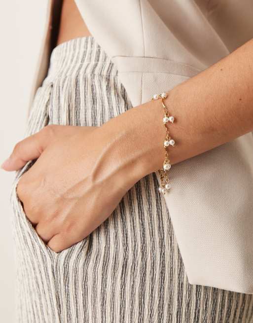 ASOS DESIGN – Bransoletka łańcuszkowa z wodoodpornej stali nierdzewnej z wiszącymi sztucznymi perełkami