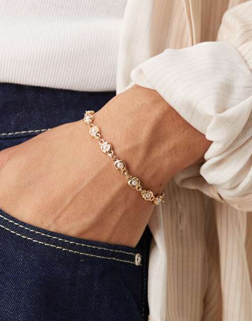 ASOS DESIGN – Bransoletka w odcieniu złota ze stopionymi ogniwami z perłami
