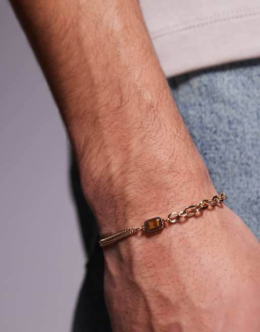 ASOS DESIGN – Bransoletka z mieszanych łańcuszków w złotym kolorze z półszlachetnym tygrysim okiem