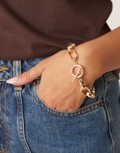 ASOS DESIGN – Bransoletka z teksturowanego łańcuszka w złotym kolorze z zapięciem t-bar