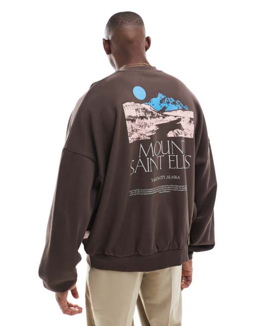 ASOS DESIGN – Brązowa bluza o fasonie extreme oversize z nadrukiem z motywem gór