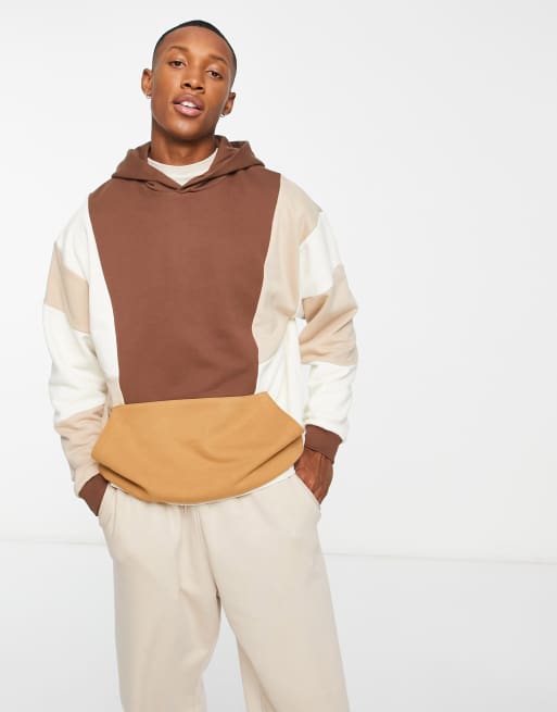 ASOS DESIGN – Brązowa bluza oversize z kapturem i blokami kolorów