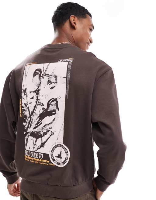 ASOS DESIGN – Brązowa bluza z fotograficznym nadrukiem z motywem ptaków na plecach
