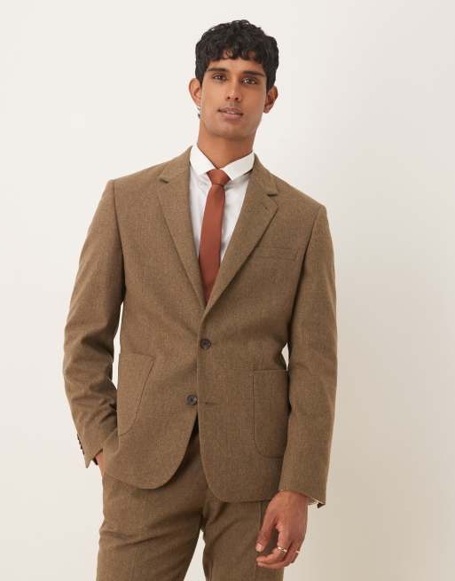 ASOS DESIGN – Brązowa dopasowana marynarka garniturowa z domieszką wełny