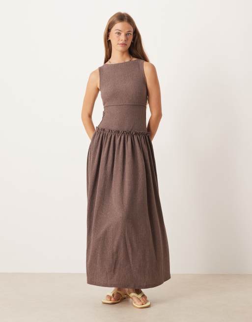 ASOS DESIGN – Brązowa fakturowana sukienka midi z ozdobnym szwem