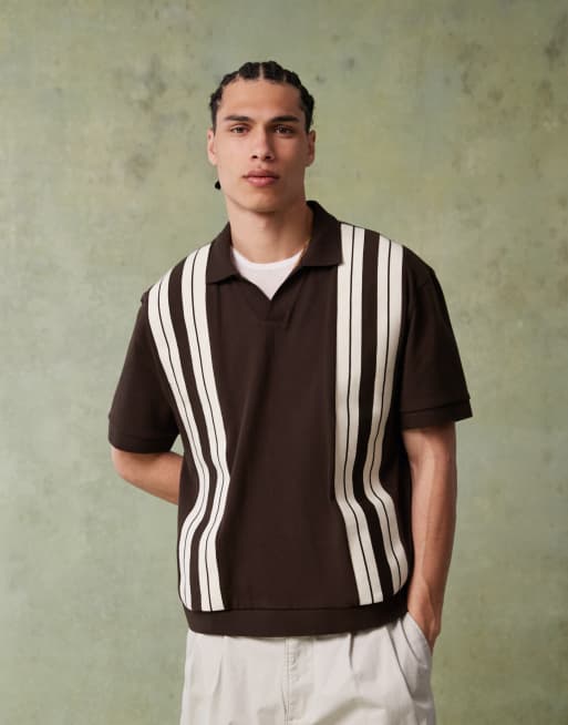 ASOS DESIGN – Brązowa gruba koszulka polo o luźnym pudełkowym kroju ze wstawkami