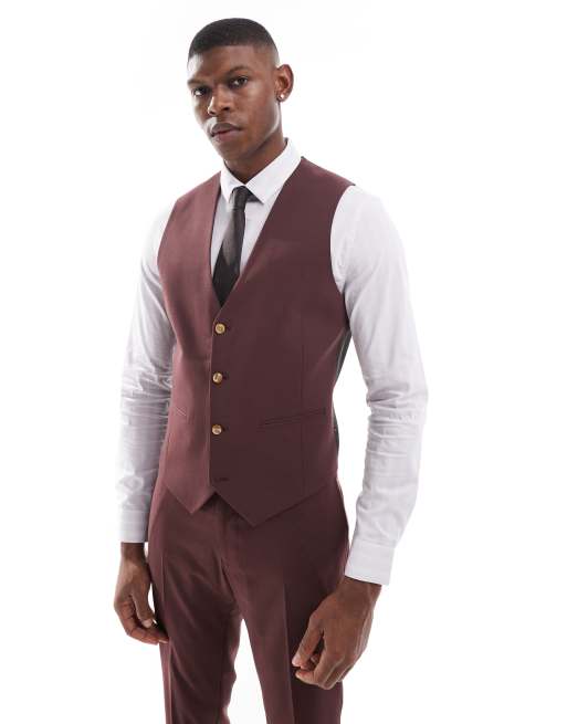 ASOS DESIGN – Brązowa kamizelka garniturowa o obcisłym kroju