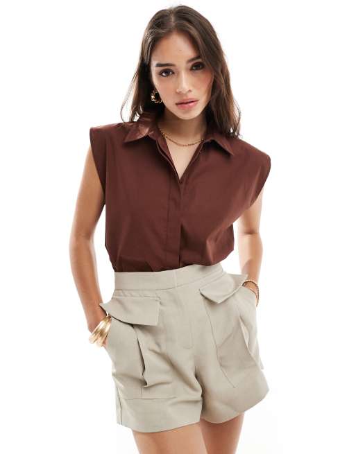 ASOS DESIGN – Brązowa koszula bez rękawów
