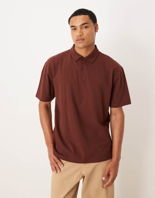 ASOS DESIGN – Brązowa koszulka polo o luźnym kroju z piki
