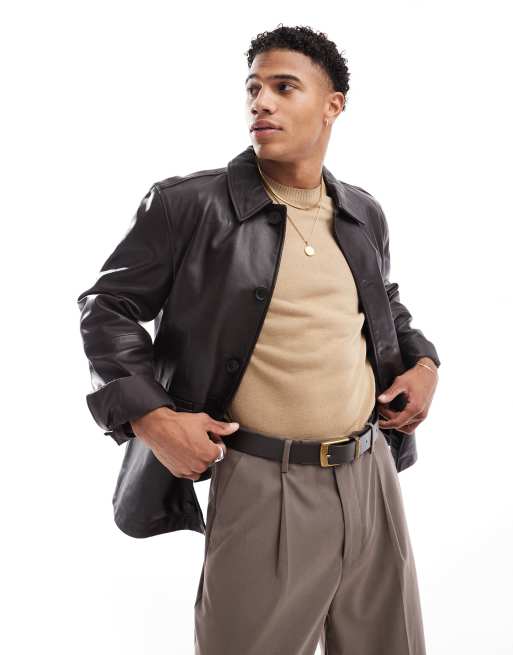 ASOS DESIGN – Brązowa kurtka harrington premium ze skóry naturalnej